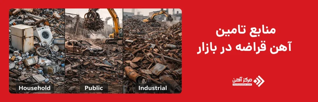 قراضه آهن از بخش های مختلفی تامین می شود که هر کدام سهم مهمی در چرخه بازیافت دارند. در بخش خانگی، ضایعات ناشی از لوازم خانگی مستهلک، بسته بندی های فلزی و وسایل مصرفی فرسوده قرار می گیرند. در بخش عمومی، ضایعات مربوط به اماکن شهری، زیرساخت ها و تجهیزات مستهلک شهری جمع آوری می شود. اما مهم ترین سهم مربوط به منابع صنعتی است که شامل ضایعات تولیدی و برگشتی از صنایع مختلف مانند فولادسازی، خودروسازی، کشتی سازی، ماشین سازی، صنایع نفت و پتروشیمی، خطوط راه آهن، دکل های انتقال نیرو و پروژه های عمرانی مانند پل سازی و سدسازی است. همچنین تخریب ساختمان های فرسوده، خودروهای اسقاطی و بازسازی تجهیزات صنعتی نیز از منابع مهم تامین قراضه در بازار قراضه آهن محسوب می شوند.