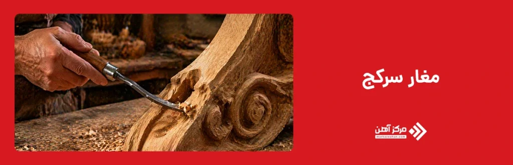 مغار سرکج تیغه ای دارد که نوک آن کمی به یک سمت خم شده است. این ویژگی باعث می شود کاربر بتواند در بخش هایی از چوب که دسترسی به آن ها سخت تر است راحت تر کار کند. این نوع مغار بیشتر در منبت کاری، خراطی و پیکر تراشی استفاده می شود. یکی از کاربردهای مهم مغار سرکج، ایجاد برش در قسمت های داخلی و زاویه دار است. در بعضی طرح ها، امکان استفاده از مغارهای معمولی وجود ندارد و تیغه سرکج می تواند بهتر وارد قسمت های باریک یا منحنی شود.