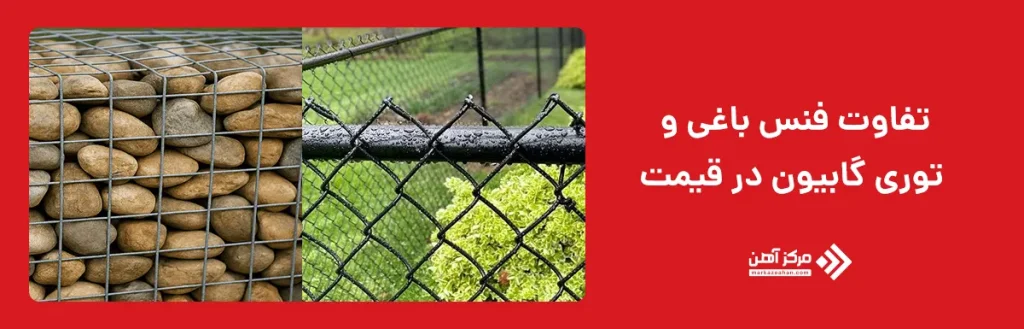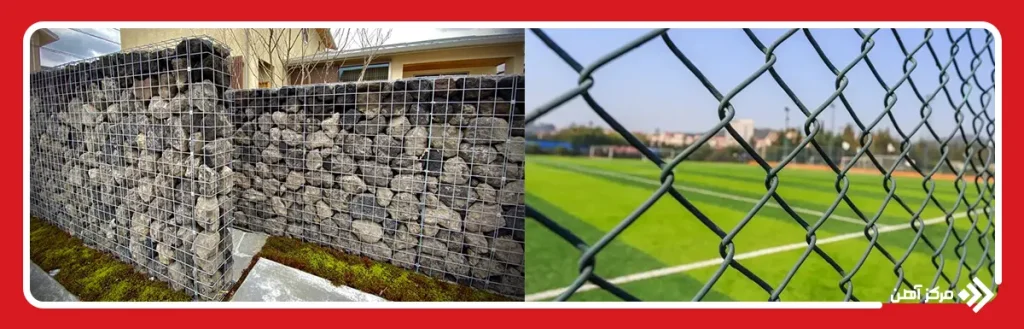 فنس باغی برای حصار کشی باغ، زمین های ورزشی و پارکها مناسب است؛ گابیون بیشتر در دیوارهای حائل، مهار خاک و سدسازی کاربرد دارد.