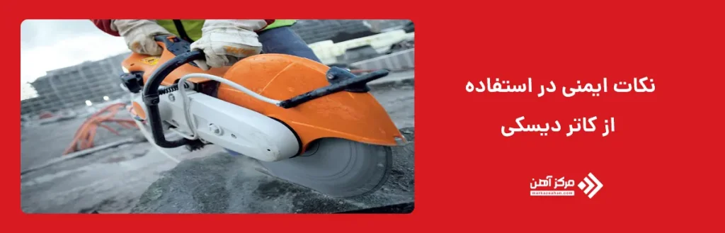 رعایت نکات ایمنی در استفاده از کاتر دیسکی اهمیت بالایی دارد و از بروز حوادث جدی جلوگیری می کند. استفاده از تجهیزات ایمنی مانند عینک، دستکش و گوشی محافظ ضروری است. بررسی سلامت دیسک و قاب محافظ قبل از شروع کار توصیه می شود. همچنین اپراتور باید با نحوه صحیح کار با دستگاه آشنا باشد تا خطرات احتمالی کاهش یابد. رعایت فاصله ایمن از محل برش و ثابت نگه داشتن دستگاه هنگام کار، نقش مهمی در جلوگیری از لغزش و خطا دارد. خاموش کردن دستگاه قبل از تعویض دیسک و انجام سرویس های دوره ای نیز از الزامات ایمنی محسوب می شود.