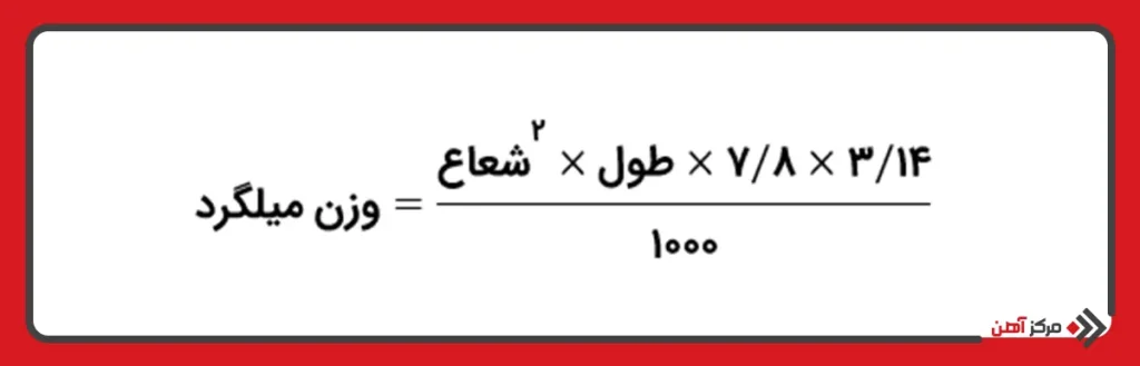 تعیین سایز میلگرد از طریق وزن کردن آن با استفاده از ترازو در مقایسه با کنترل چشمی، دقت بیشتری دارد. در این روش ابتدا وزن میلگردهای ساده و آجدار با طول های مختلف، با استفاده از ترازو اندازه گیری میشود. سپس با داشتن وزن میلگرد، قطر آن را از طریق فرمول زیر محاسبه می کنند. البته این روش برای تعیین سایز میلگردهای بسته شده کارایی نخواهد داشت.