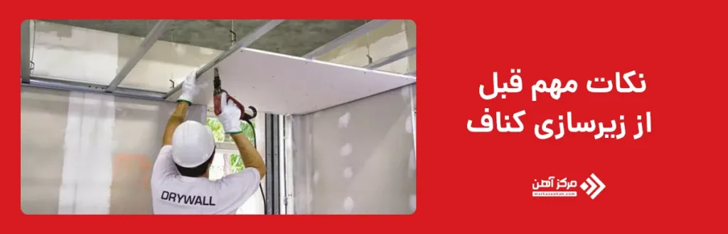 یکی دیگر از نکات مهم در نحوه زیرسازی کناف، بررسی استحکام سقف اصلی است. پیش از شروع اجرای کناف سقف یا زیرسازی کناف دیوار، باید از تحمل وزن سازه توسط سقف اطمینان پیدا کنید. رعایت فاصله استاندارد سازه کناف بین آویزها و پروفیل ها نیز در جلوگیری از ترک خوردگی پنل های گچی بسیار مؤثر است.