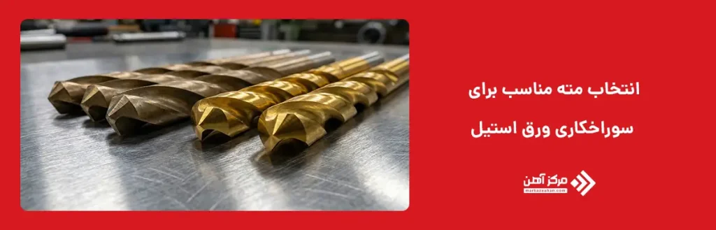 انتخاب مته مناسب مهم ترین بخش سوراخکاری ورق استیل است. اگر مته درست انتخاب نشود، حتی با رعایت تمام مراحل هم نتیجه مطلوب به دست نمی آید. استیل نسبت به آهن معمولی سخت تر است و گرما را سریع بالا می برد. به همین دلیل باید از مته هایی استفاده شود که در برابر حرارت و سایش مقاوم باشند. در نحوه سوراخ کردن ورق استیل معمولاً پیشنهاد می شود از مته کبالت یا مته HSS با روکش تیتانیوم استفاده شود. این نوع مته ها دوام بیشتری دارند و دیرتر کند می شوند.