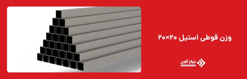 قوطی استیل 20×20 در ضخامت های ۱ تا ۱.۵ میلی متر تولید می شود و وزن آن بین ۰.۶۲ تا ۰.۹۱ کیلوگرم بر متر متغیر است.