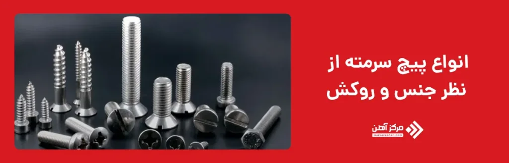 پیچ سرمته بر اساس جنس، شکل نوک، نوع گل، کاربرد و طول دسته بندی می شود. هر نوع برای اتصال قطعات چوبی، فلزی، سقف شیروانی یا سازههای صنعتی کاربرد خاص خود را دارد.